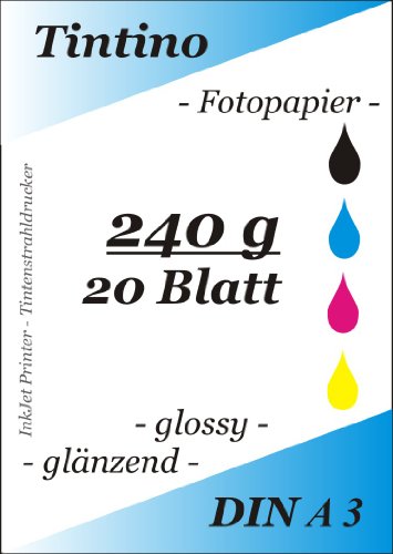 A3 - 20 Blatt Fotopapier Photopapier DIN - A 3 - 240g/qm - glossy glaenzend - sofort trocken - wasserfest - hochweiß - sehr hohe Feature