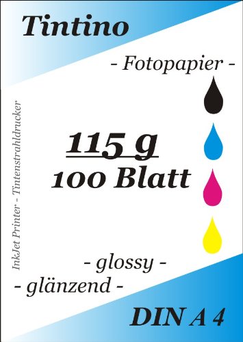 100 Blatt Fotopapier DIN A4 115g/qm extra leicht dünn glossy glaenzend -sofort trocken -wasserfest-hochweiß-sehr hohe Feature