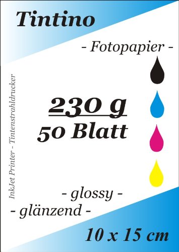 50 Blatt Fotopapier 10 x 15 cm 230g/qm high -glossy glaenzend - sofort trocken - wasserfest - hochweiß - sehr hohe Farbbrillianz Feature