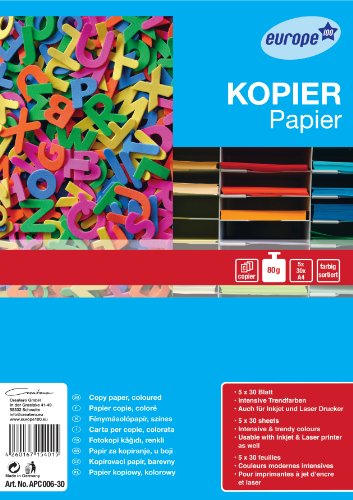 europe 100 APC006-30 Universalpapier, A4, 80g, 5x30 Blatt, farbig Feature