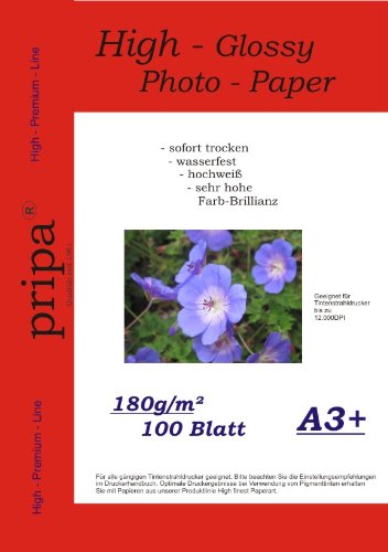 pripa 100 Blatt A 3 + , 480 x 330 mm , 180g , high-glossy ( hoch-glänzend ) - sofort trocken - wasserfest - hochweiß - sehr Feature