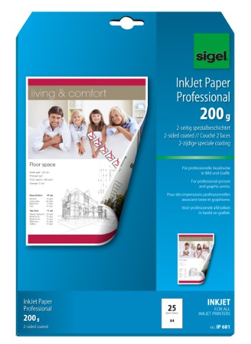 Sigel IP681 InkJet-Papier, 2seitig spezialbeschichtet matt, hochweiß, beidseitig bedruckbar, 200 g, A4, 25 Blatt Feature