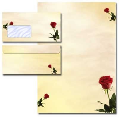 20-tlg. Motivpapier Komplett-Set BACCARA ROSEN Briefpapier 120g/m² + Umschläge DIN LANG mit Fenster Feature